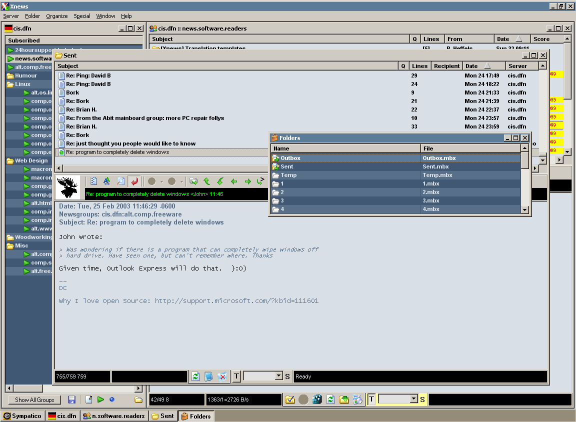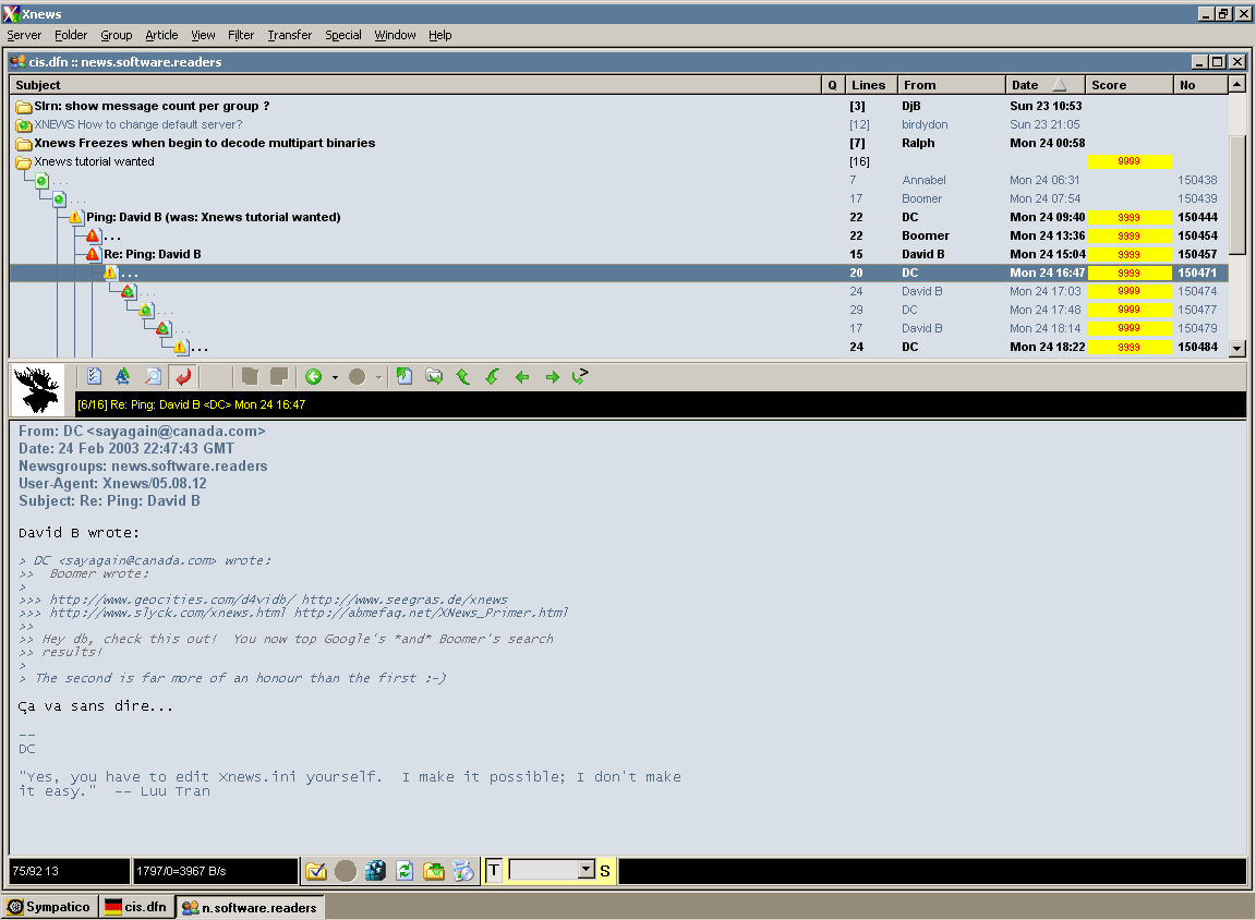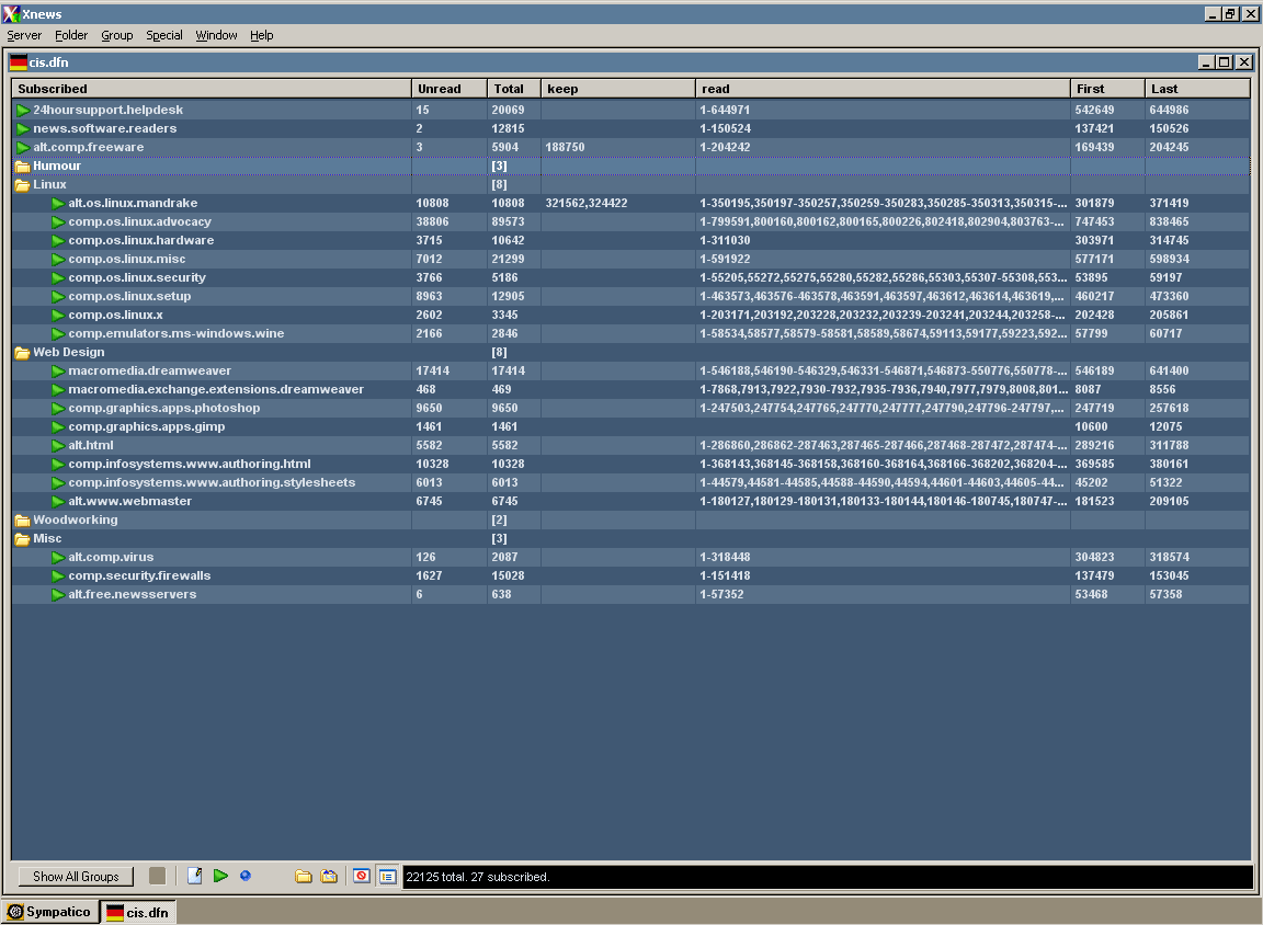 ScreenshotsHere are a few screen captures to illustrate the fresh new appearance that you can give Xnews by applying my icon sets. Of course, you could also design your own -- you are limited only by your imagination! }:O)